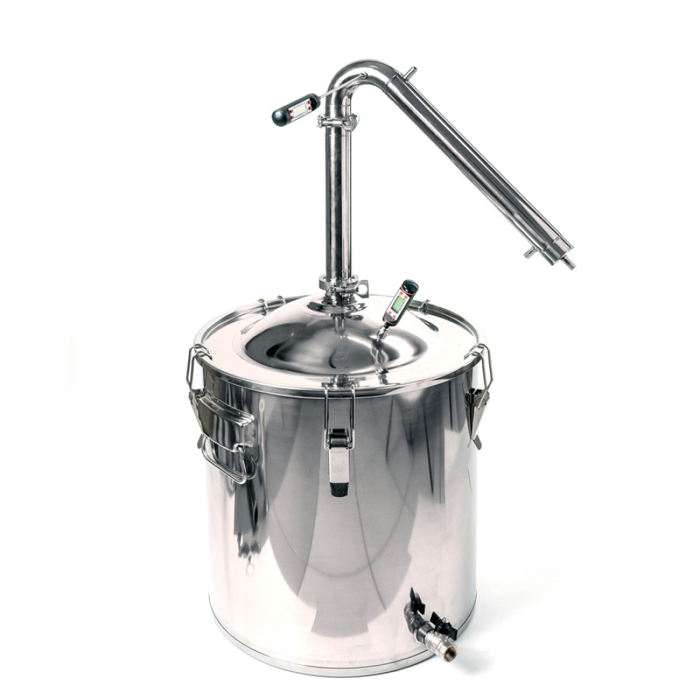 Self-made apparatus "Gorilych" Universal 50/400/t is a good option for the first steps in the new world of distillation and rectification of strong alcohol. The volume of the 50 L still allows to control the equipment alone, the basic configuration makes it easy to get clean distillates from any type of raw material. Usually, the first experiments start with sugar brew, but the wide mouth of a cube with a diameter of 400 mm is adapted to raw materials based on grain or fruits and berries, providing easy access for cleaning. An induction bottom of 5 mm thickness can significantly reduce energy costs when heating a cube on induction-type plates.
